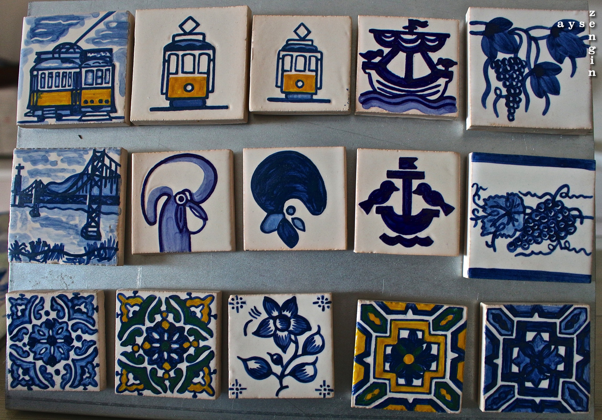 So my friend who is a local, booked us in to a tile painting class (teacher’s details are below) or Azulejos as the Portuguese would say… The class only cost 15EU where we painted two tiles. She had drawn the pattern on with lead pencil and she demonstrated how we should paint and how dark each section should be. It was really nice in that it was only us three and the teacher. Her English was good enough and she had even researched the correct English words to use – which impressed me, it showed that she cared…
